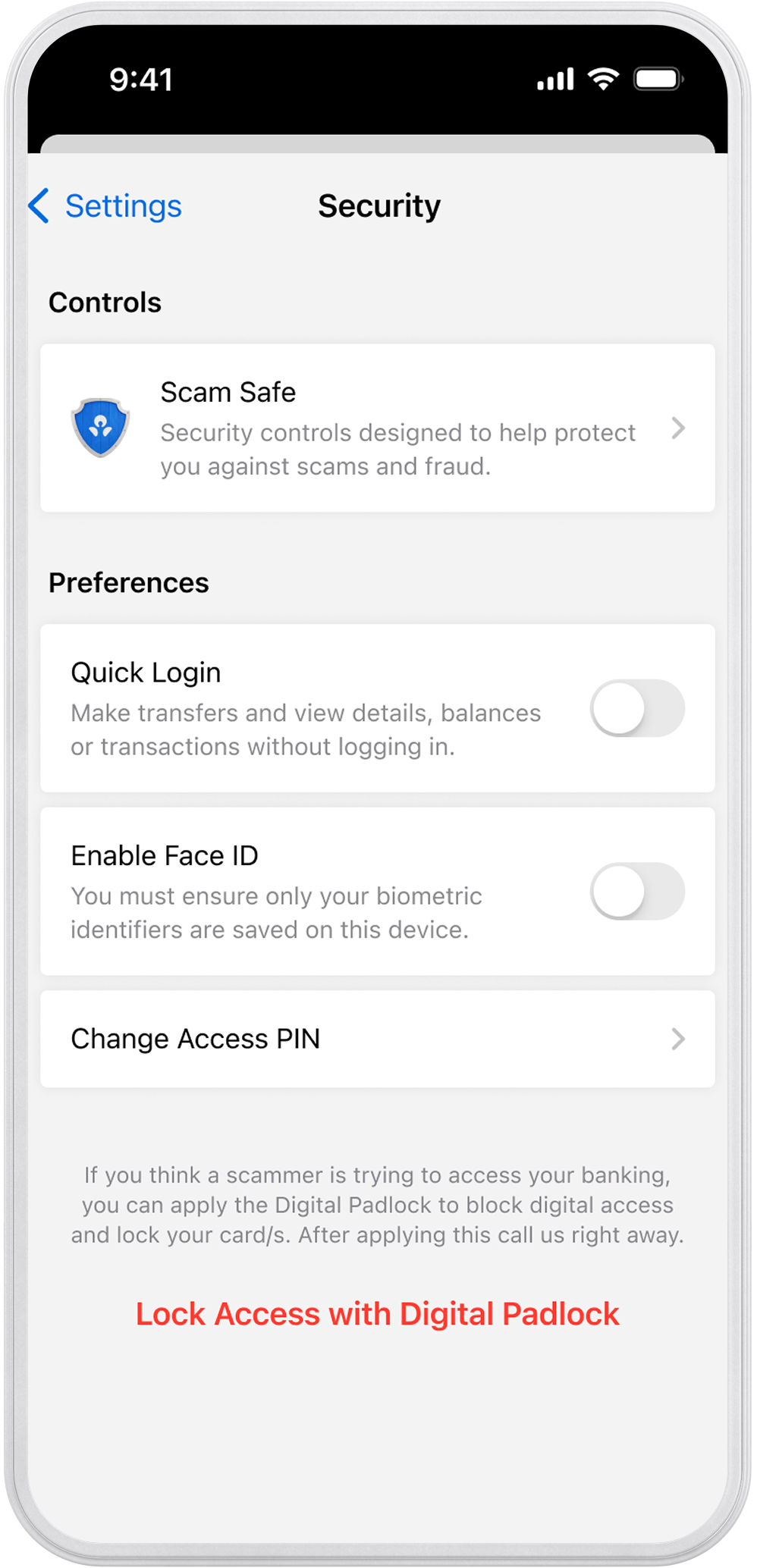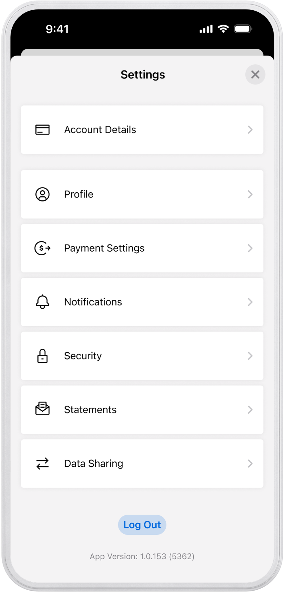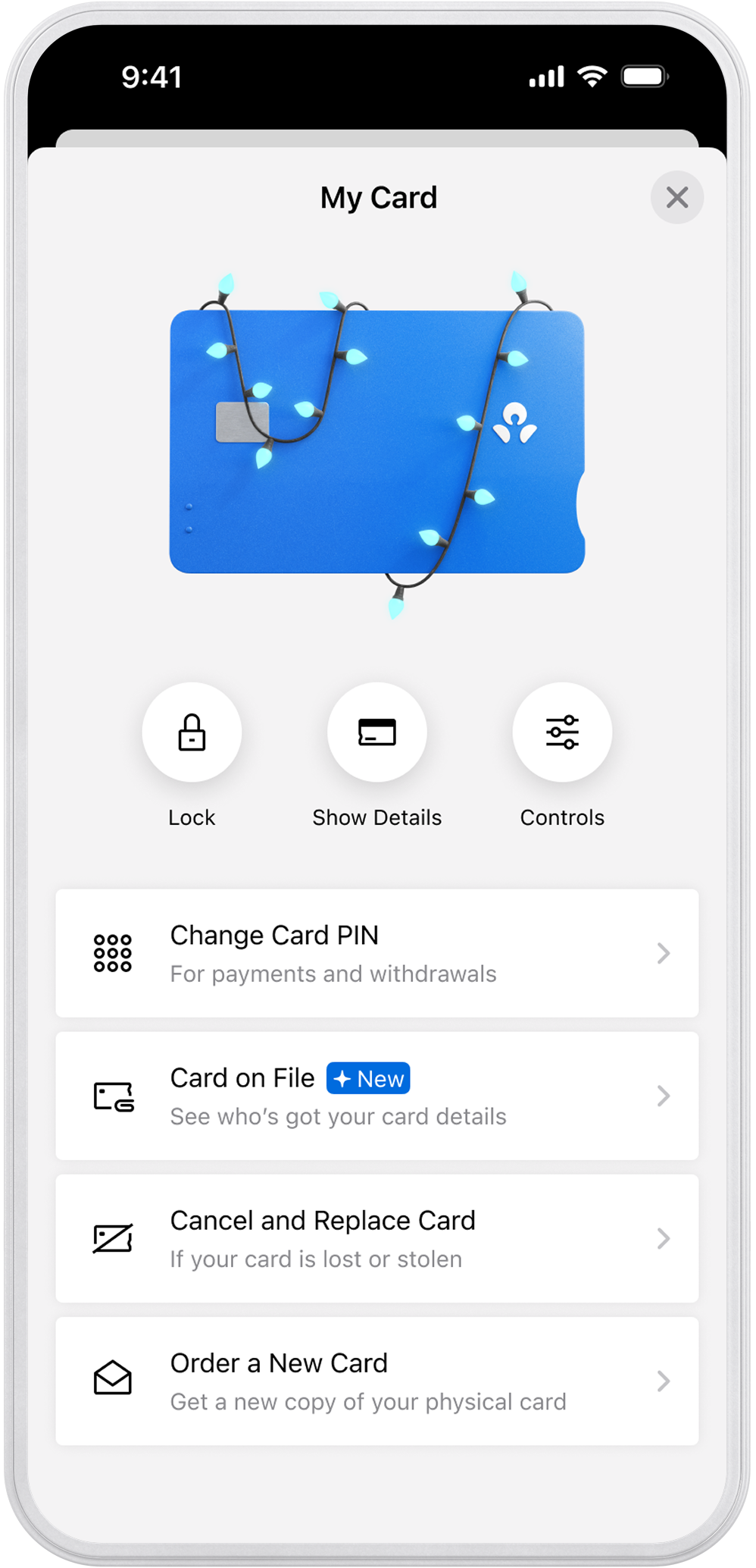 Updating personal details, viewing account info, managing payment limits and security controls.