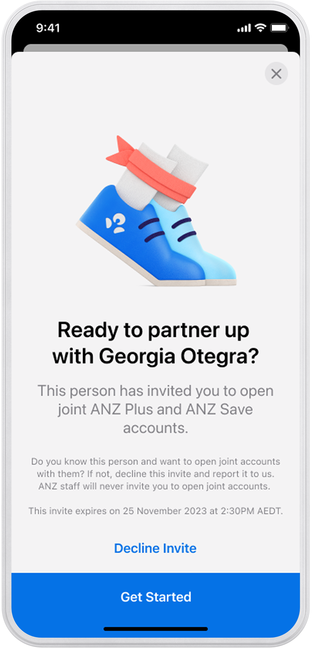 Our most requested feature, we delivered Joint Accounts as a simple upgrade for existing ANZ Plus customers. Simply invite your plus one, familiarise yourself with the legalities of the situation and away you go.