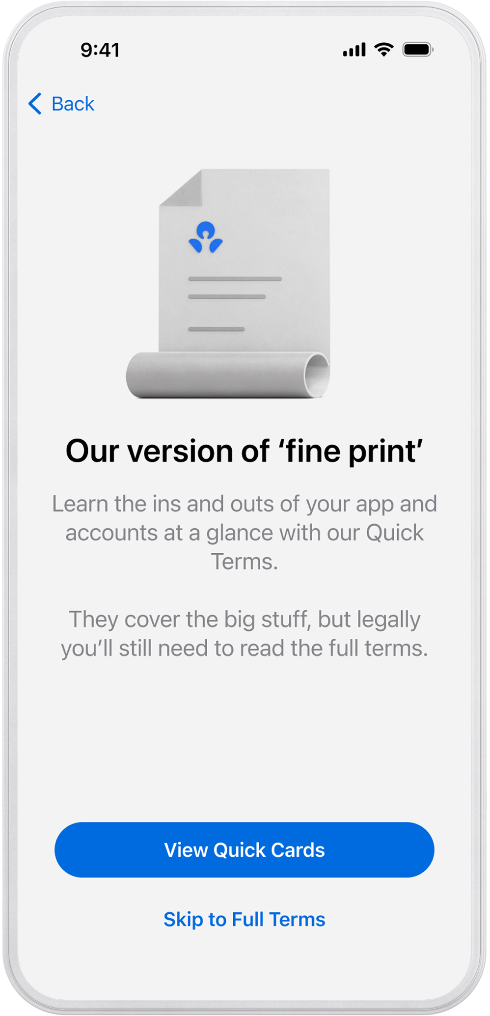 For T&Cs, we're all just looking for the TLDR. WIth Quick Terms we created exaclty that.
