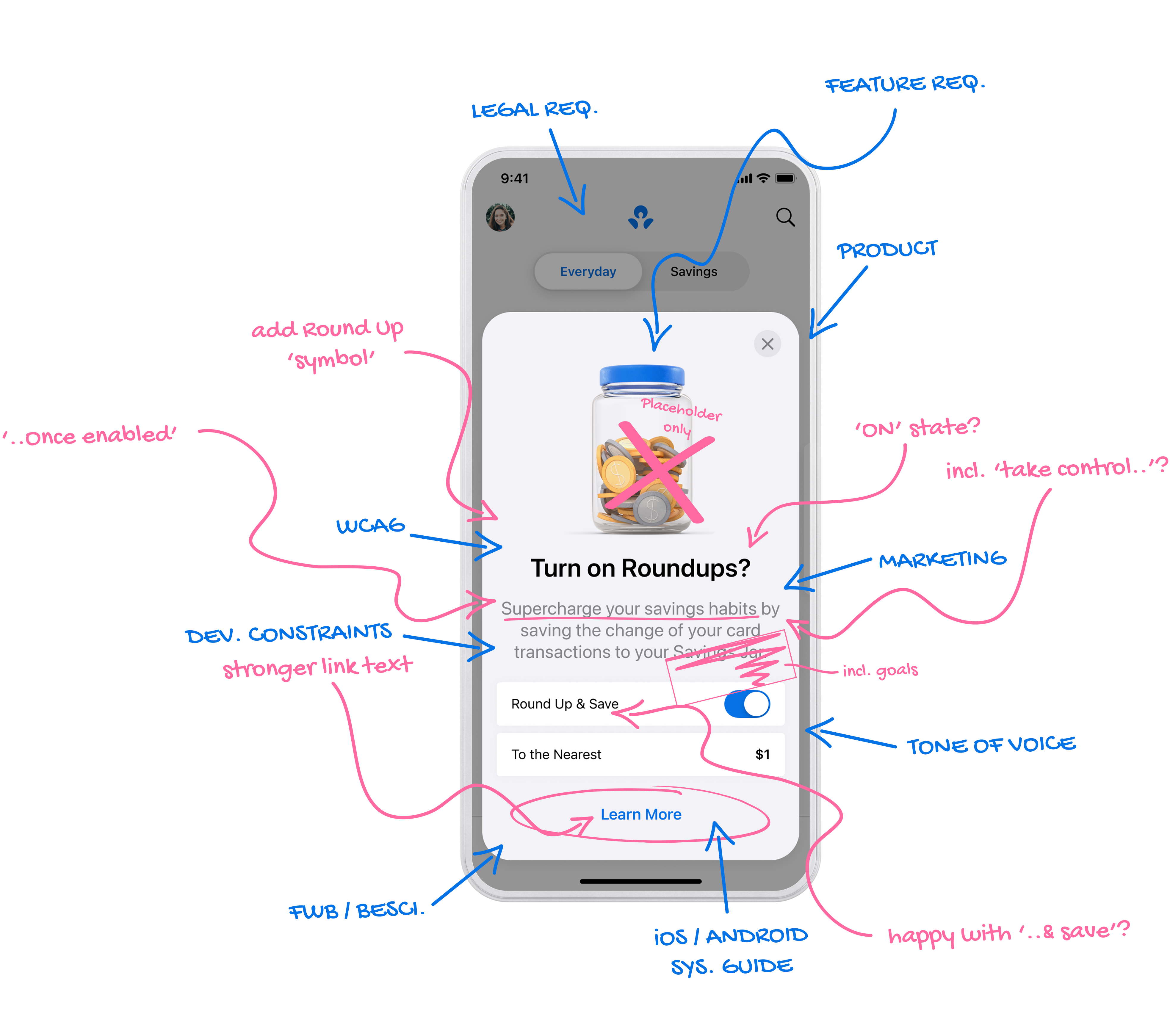 Designing the tone of voice for ANZ Plus was only part of the challenge. Content for financial services passes through multiple layers of reviews – product, compliance, legal and risk. Without the right collaborative model, even the most thoroughly designed tone of voice can disappear in this approval process.